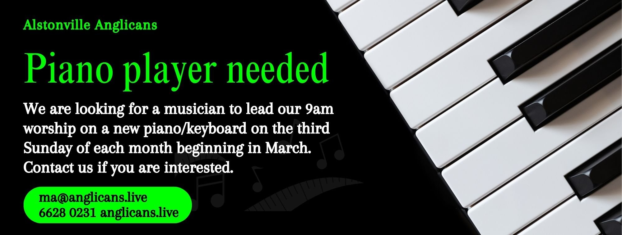 We want to help make your first experience with Alstonville Anglicans a great one!