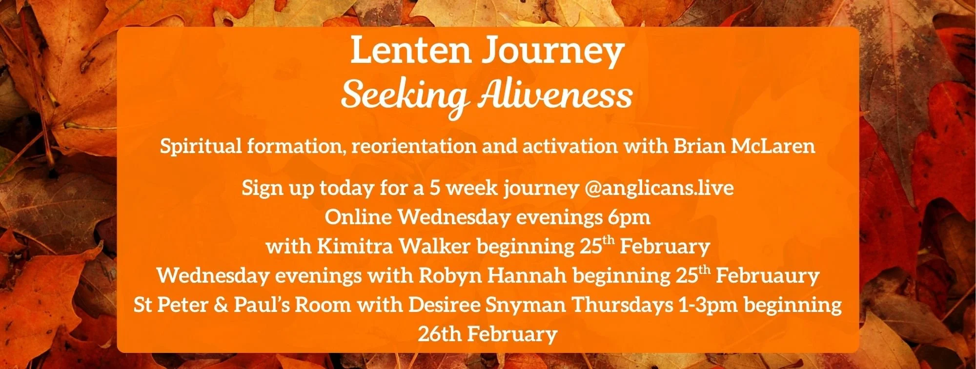 Anam Cara means ‘soul friend’. Anam Cara Church meets Wednesdays 9am for guided meditation and Thursdays 6pm for non-guided meditation.